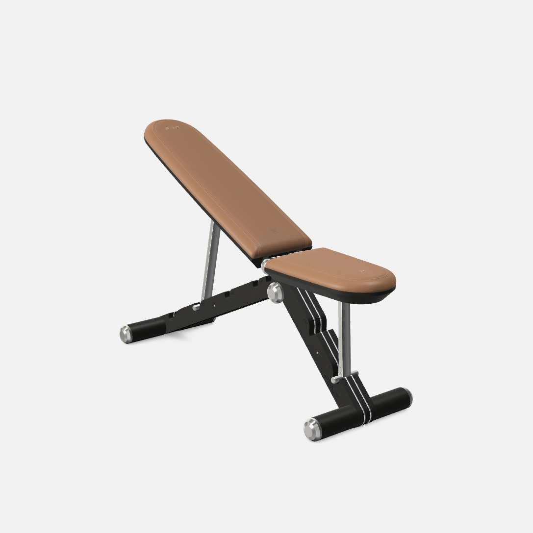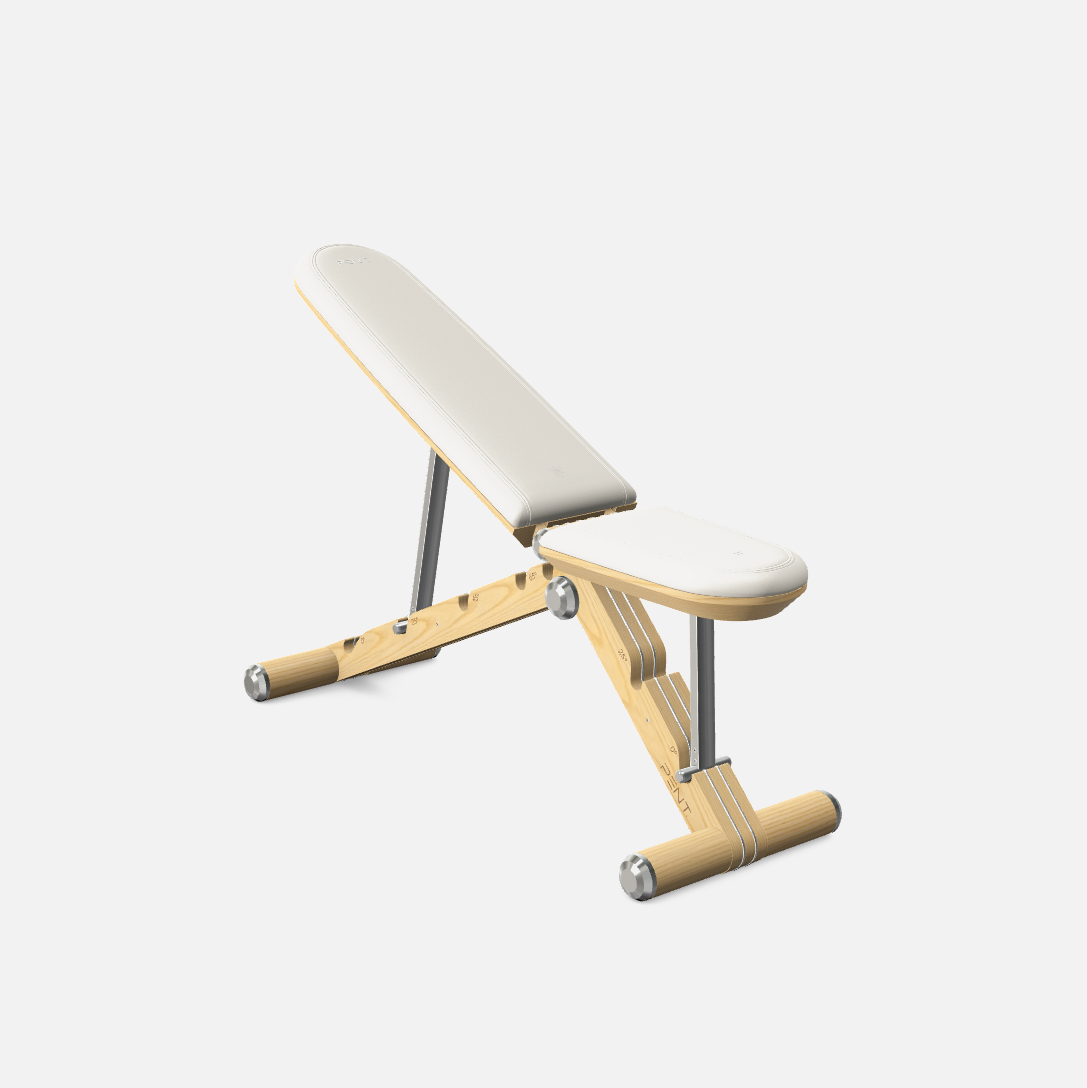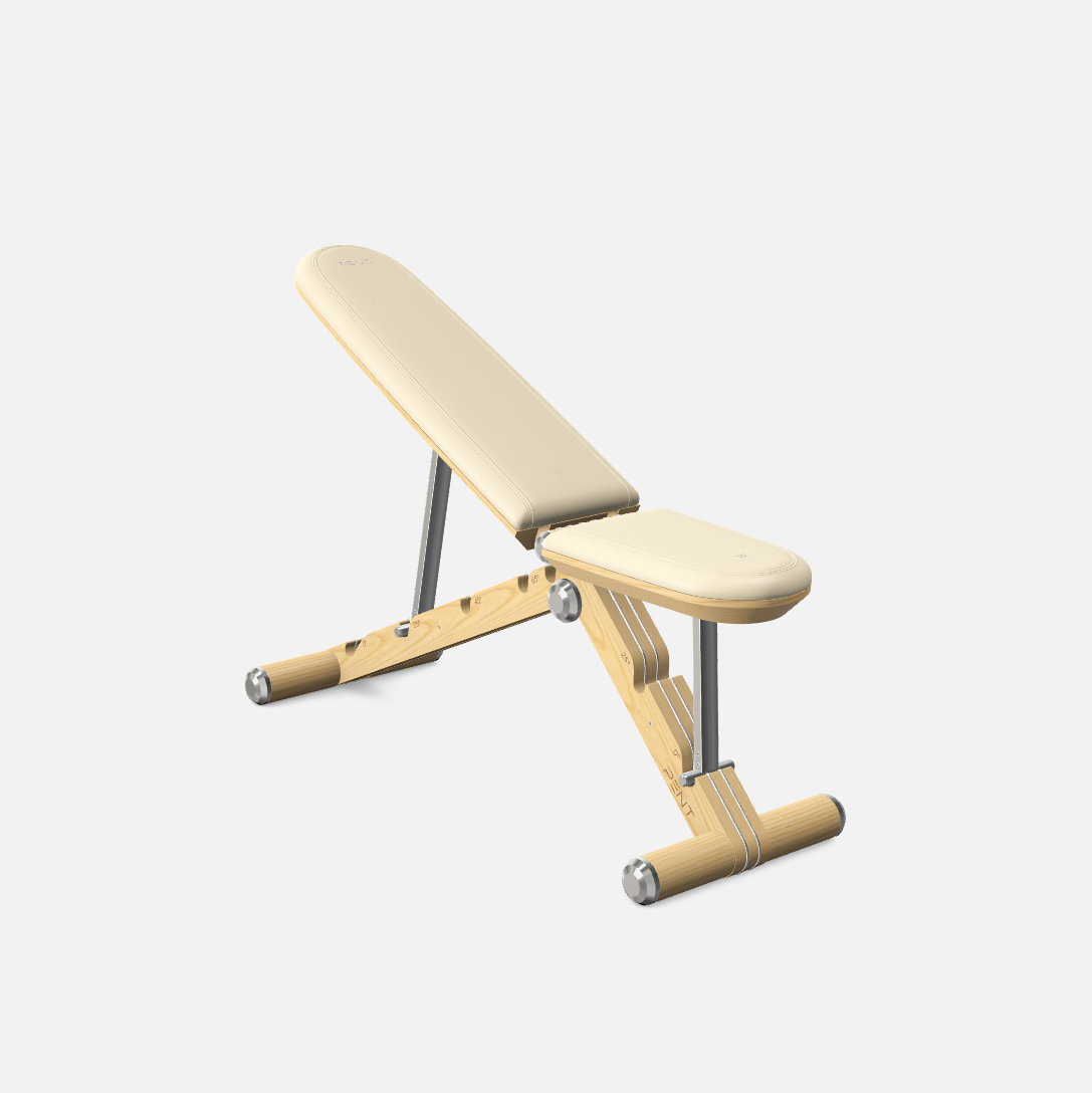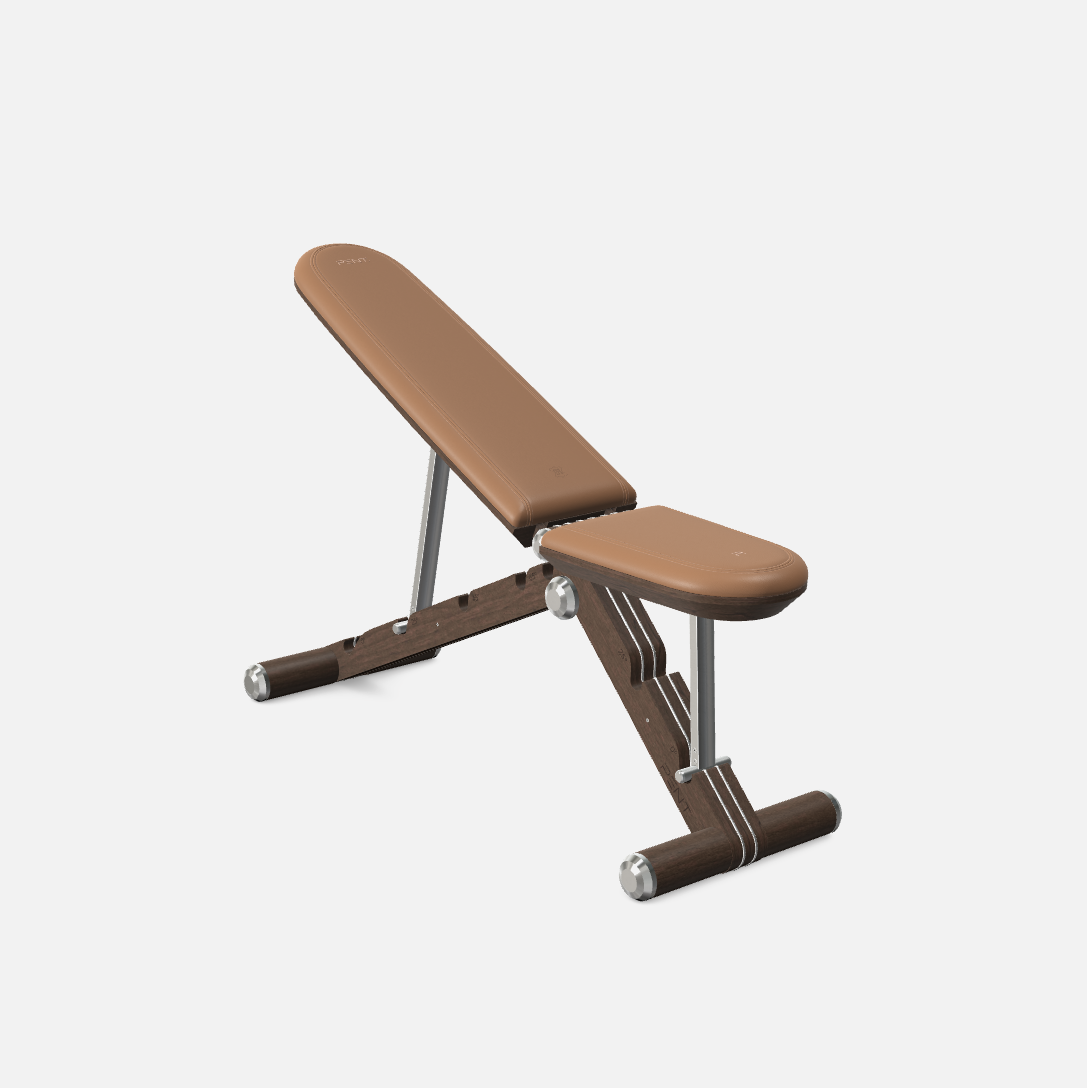 A modern and sleek adjustable lifting bench, with a wood and stainless steel core. Back adjusts to 4 positions, seat adjusts to 2 positions. Used for flat and incline bench press exercises.