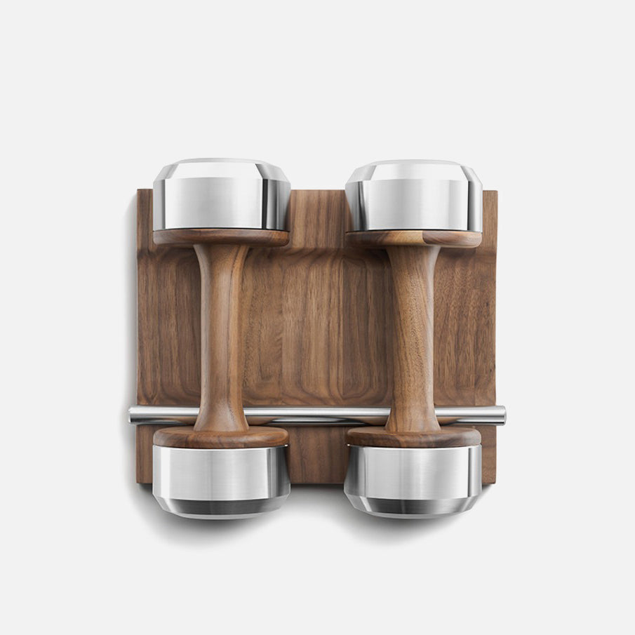 The made to order individual Pent Colmia Dumbbell. Made of real wood, and stainless steel, and comes with a matching wood base.
