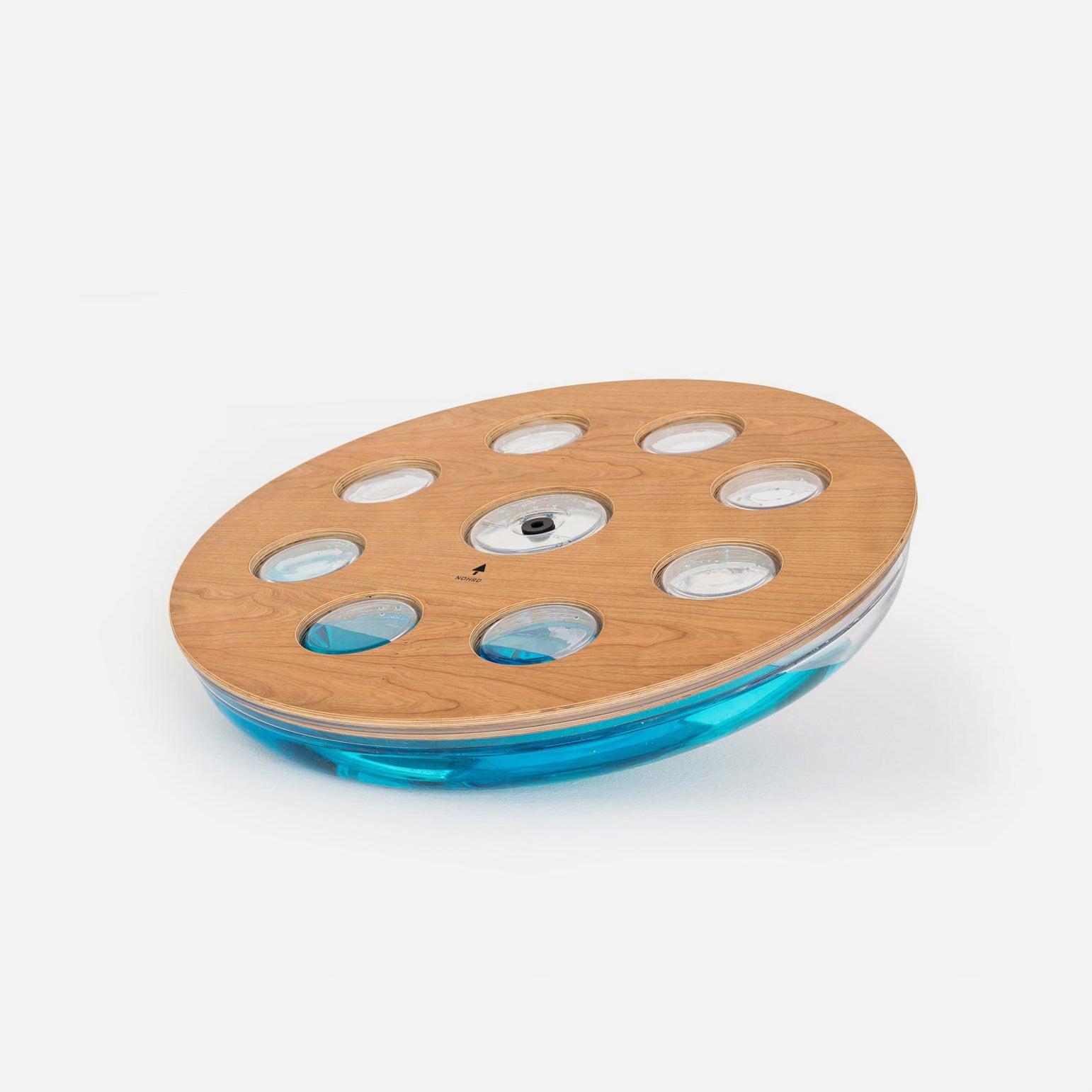 Water-based balance board. The Eau-Me Board is all about balance. Designed to simulate uneven ground, your body is continuously engaged, while the board aims to tilt you off center. The water-filled base is sure to react against your every move – guaranteed to deliver an extra dimension to your balance & core stability session. Definitely a surprisingly challenging addition to your wellness exercise routine.