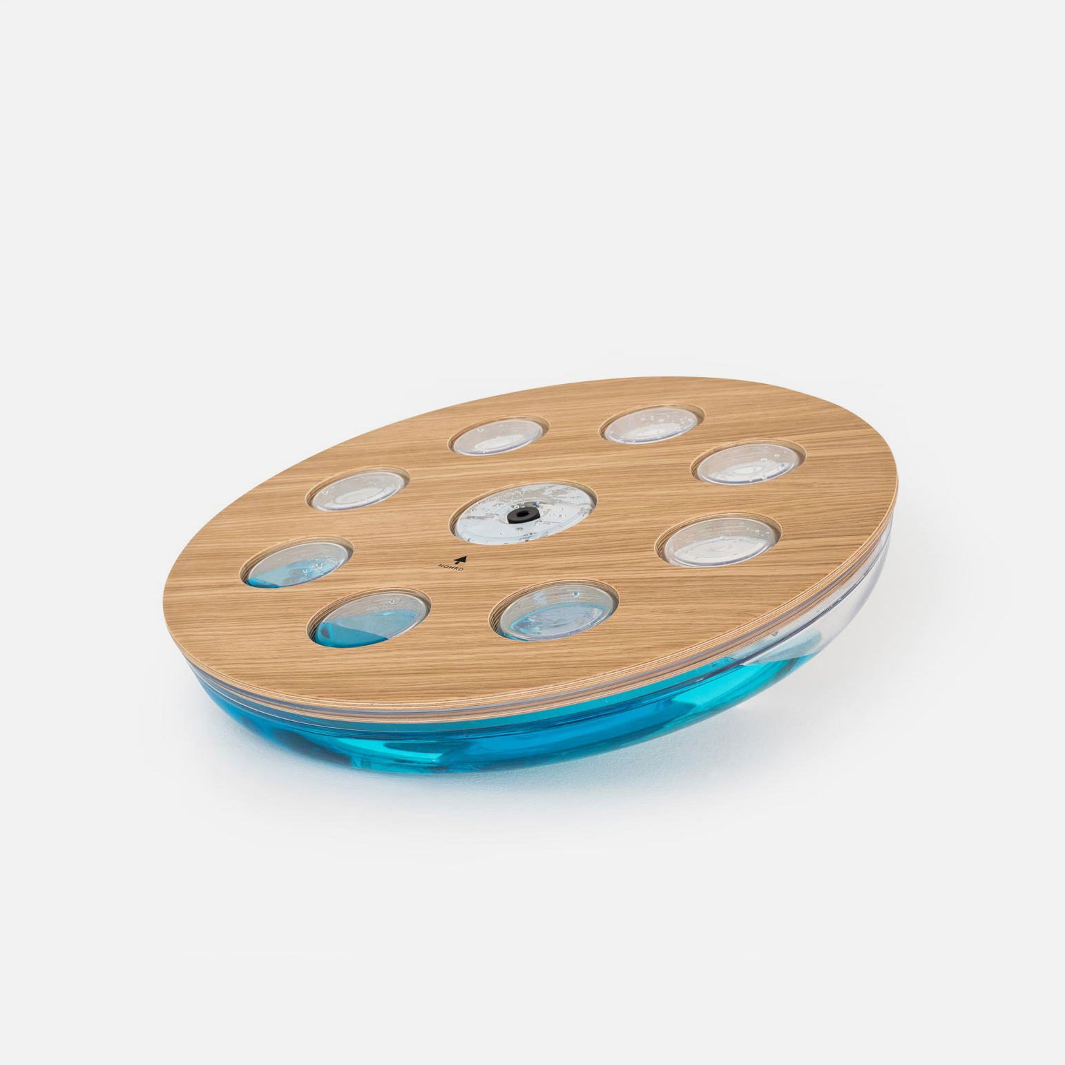 The Eau-Me Board comes in a generous 64 cm diameter with ample space for your foot positioning. Its unique feature is the water tank, designed to hold up to 6.5 litres water. For your footpad, choose between from our selection of real wood veneer or our HPL color palette to seamlessly suit your interior.