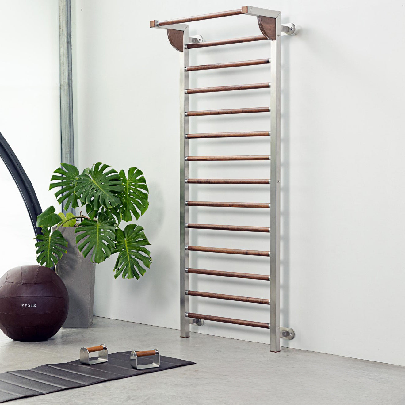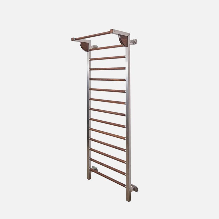 This is our interpretation of the stall bar — an iconic piece of exercise equipment that has stood the test of time, and we tip our hat to its Swedish inventor. Crafted with a stainless steel frame and reinforced horizontal bars made from solid wood, it’s designed to support recovery, calisthenics training, or simply to be enjoyed as is, with its living room-proof design.