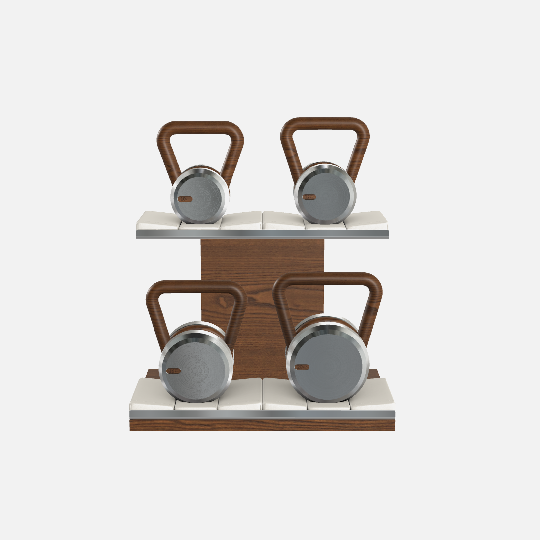 LOVA™ the true evolution of modern solutions for home gym & the hotel industry. The kit gives a great visual effect and is ergonomically optimized. American oiled walnut wood provides a good grip and gives pleasure to touch. Stainless steel metal.