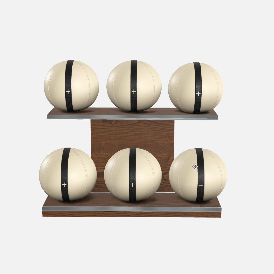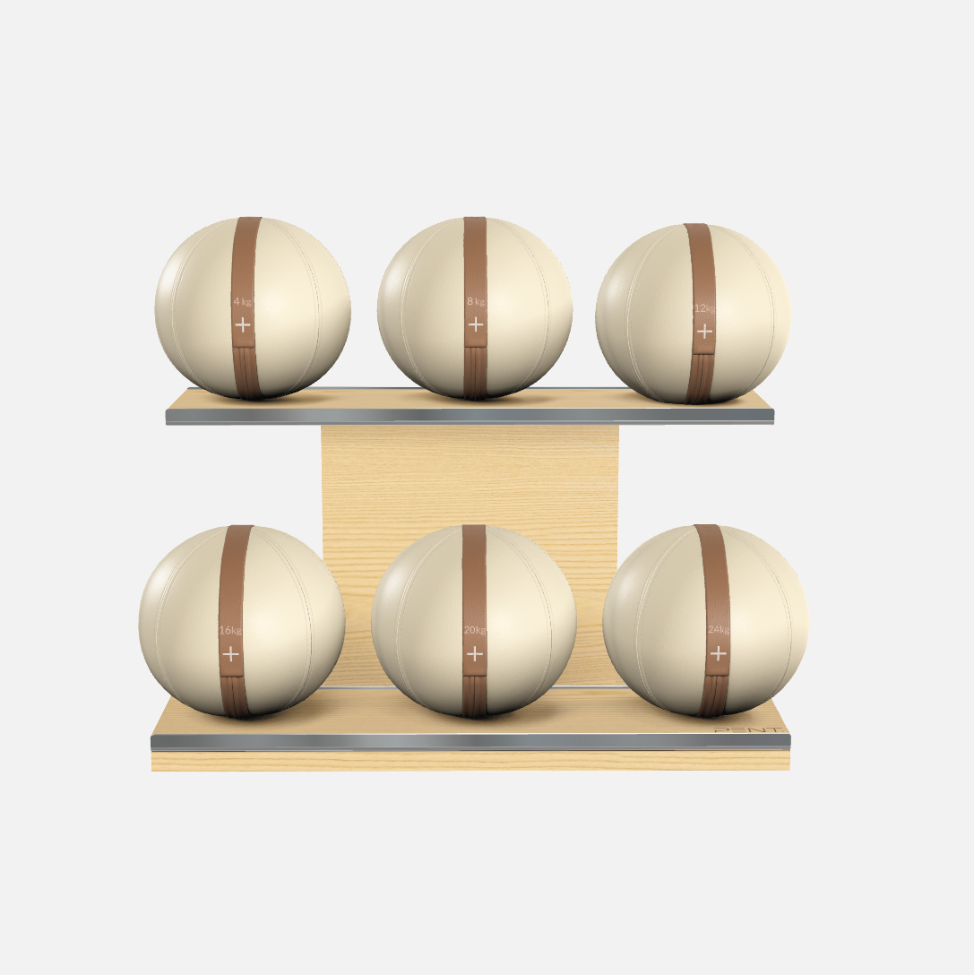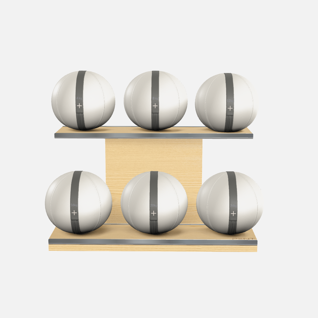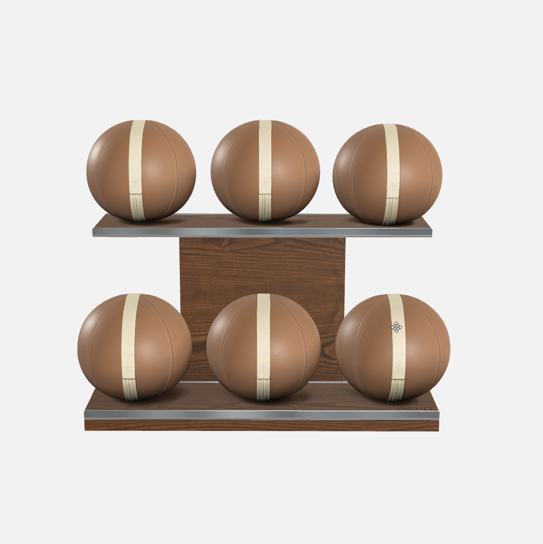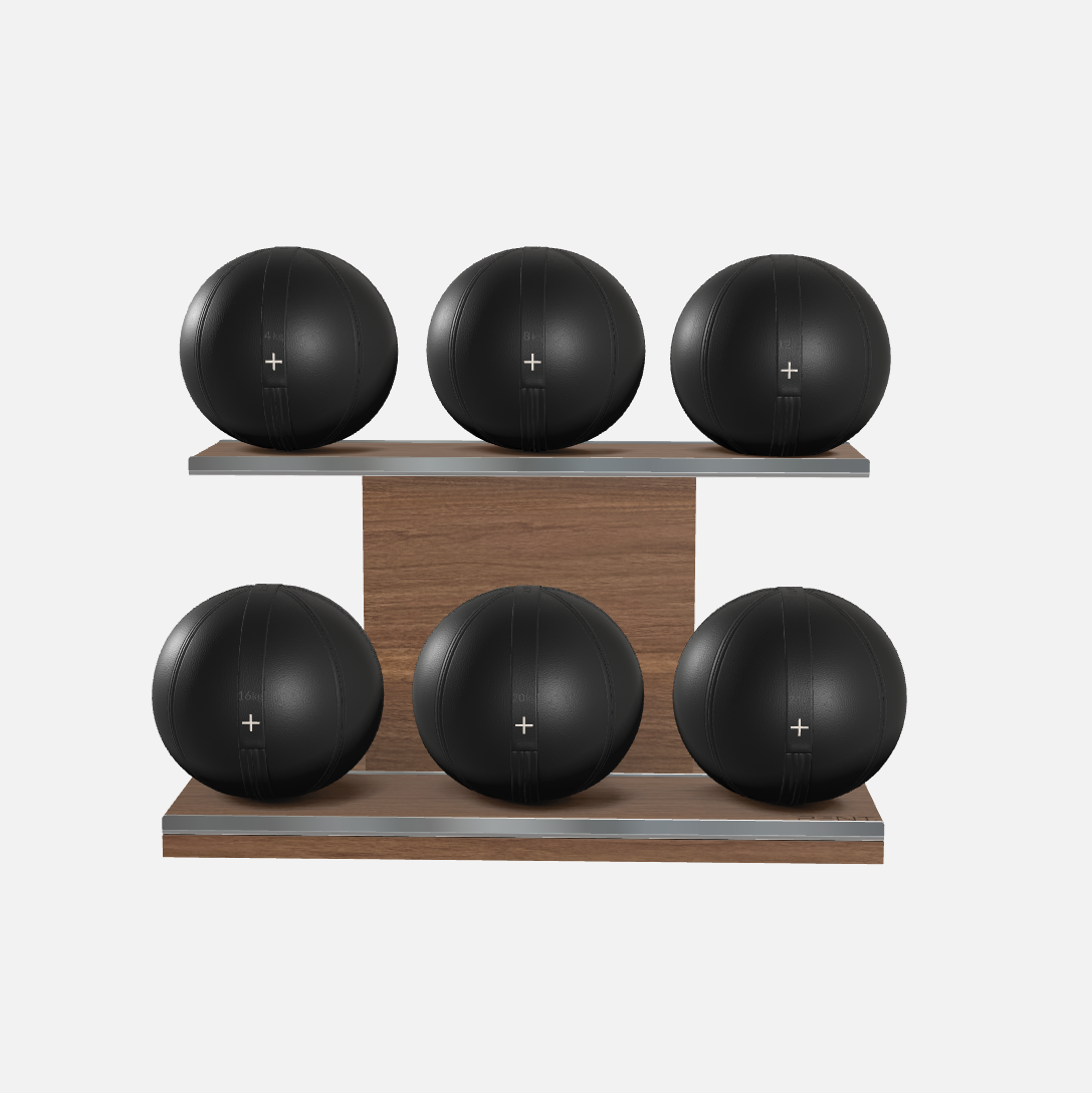 Moxa is a luxury medicine ball set hand made in Europe with real leather, with a minimal wood stand. Available in 5 leather colors, and 5 wood finishes.