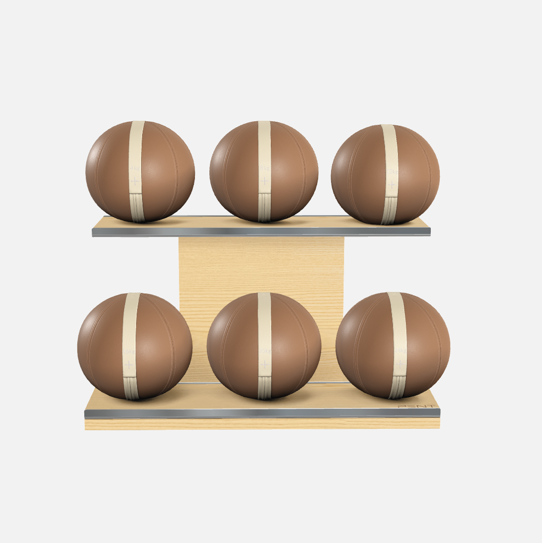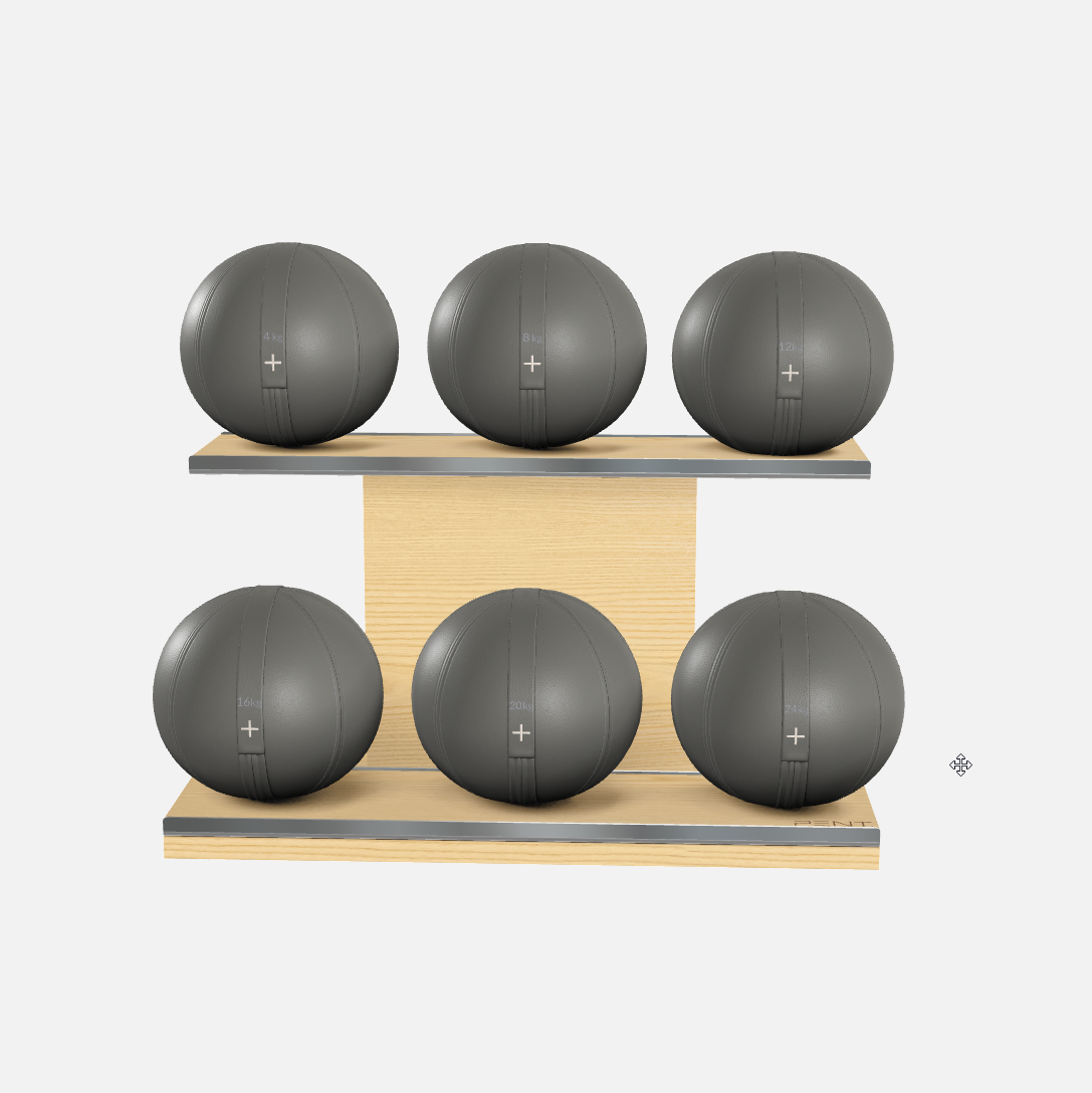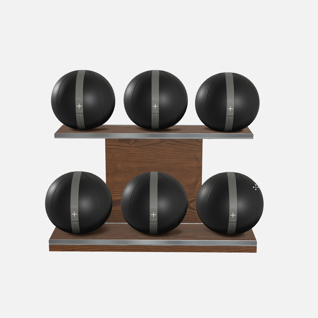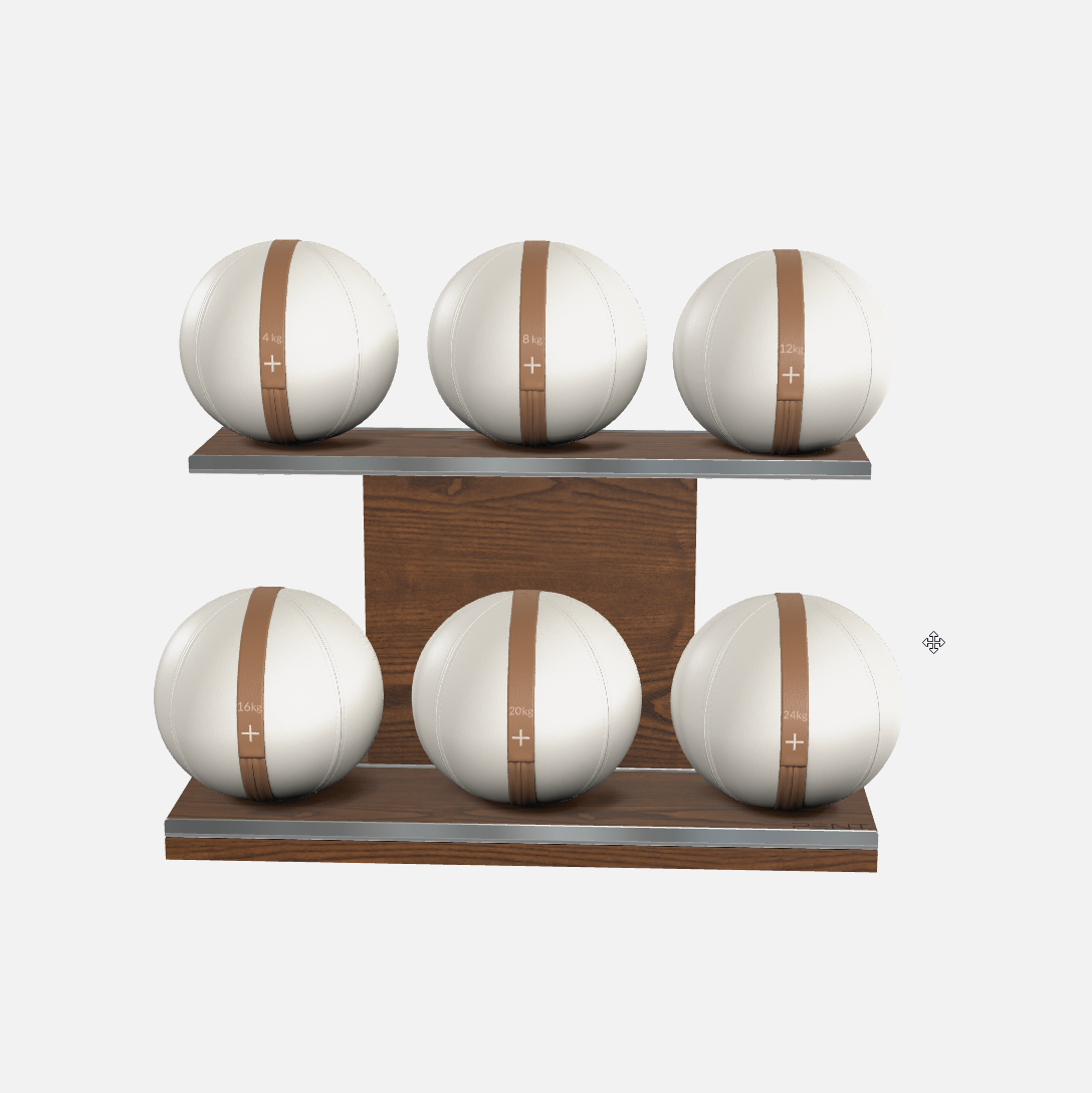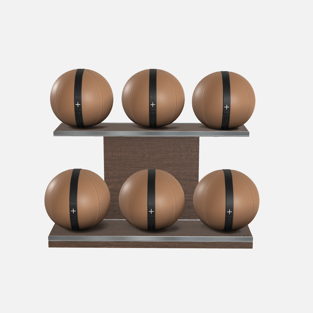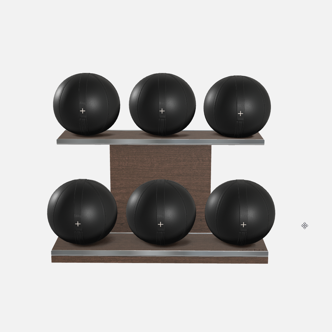 Moxa is a luxury medicine ball set hand made in Europe with real leather, with a minimal wood stand. Available in 5 leather colors, and 5 wood finishes.