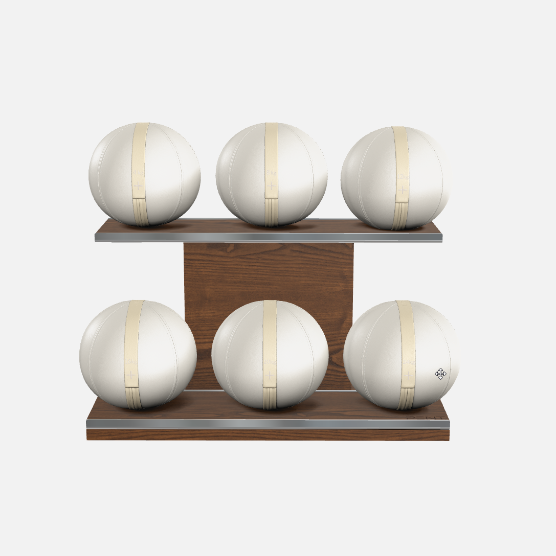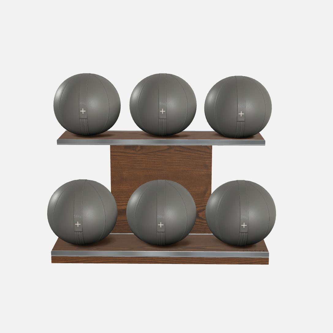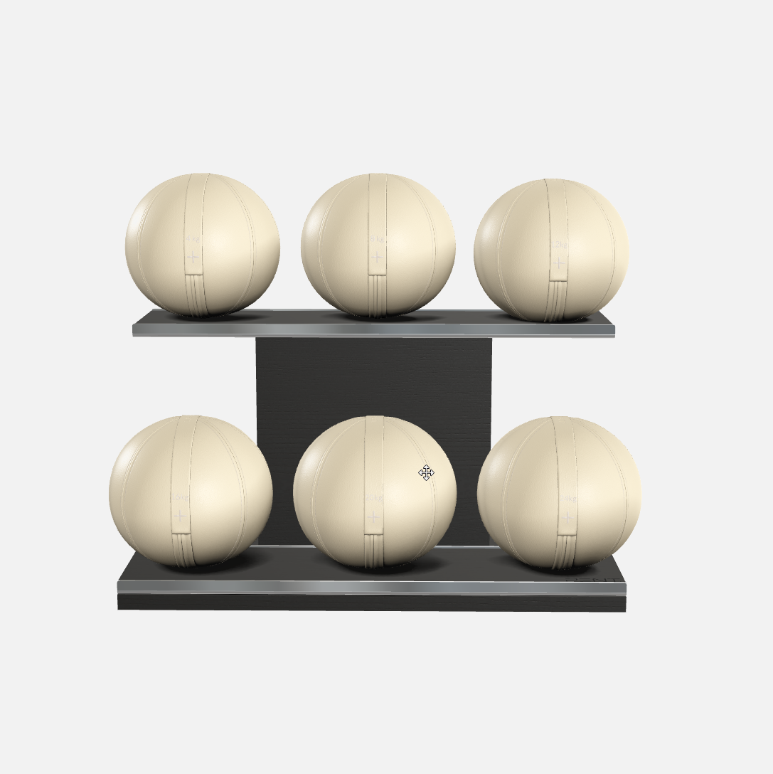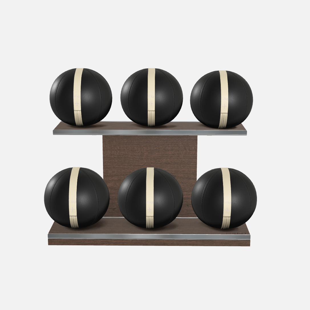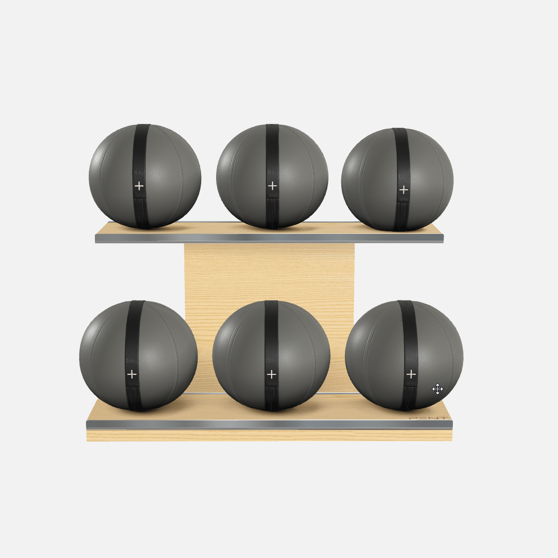 Moxa is a luxury medicine ball set hand made in Europe with real leather, with a minimal wood stand. Available in 5 leather colors, and 5 wood finishes.