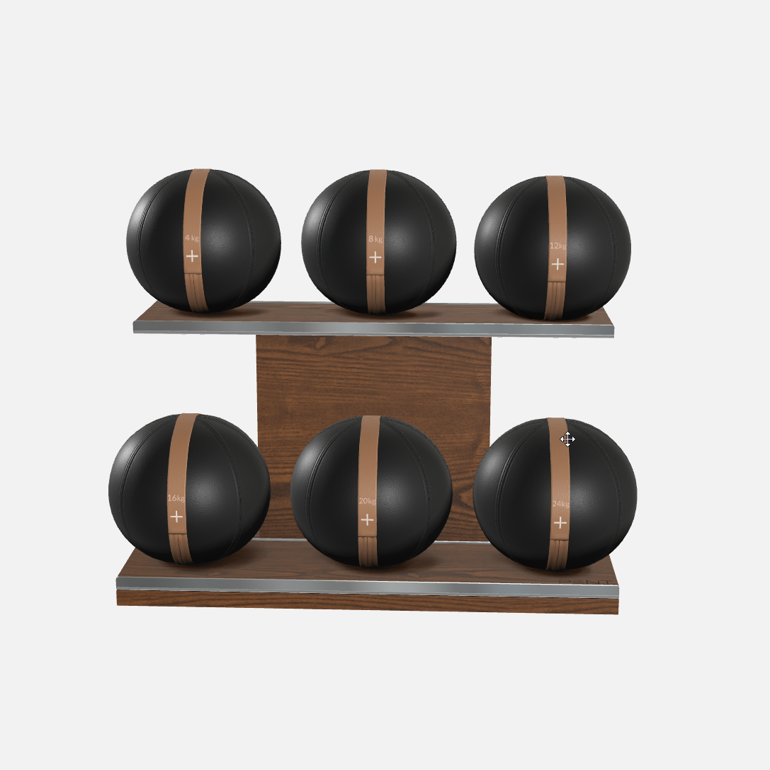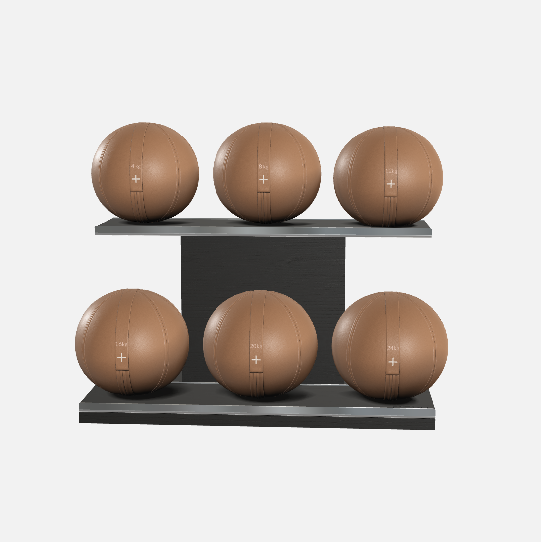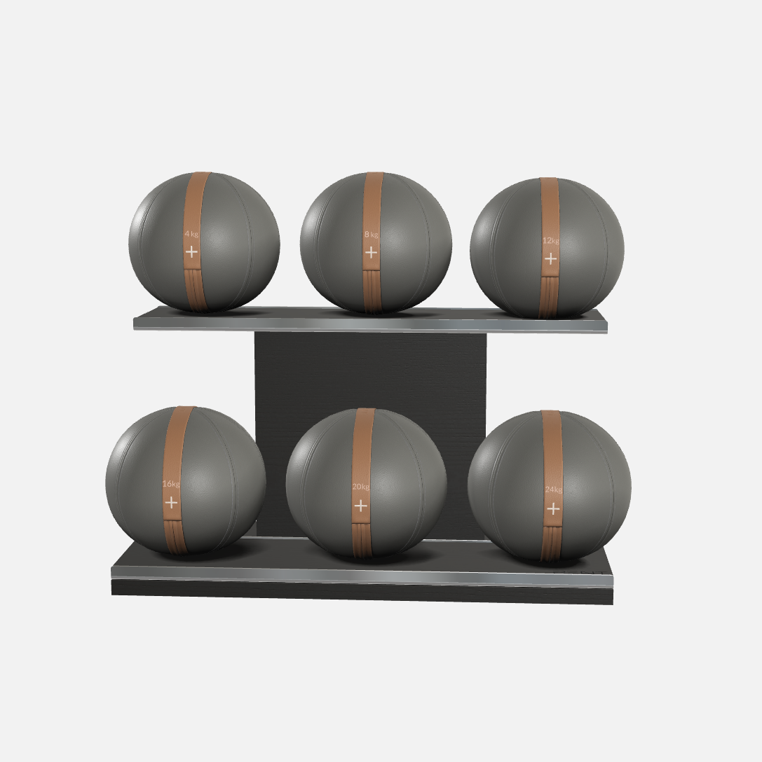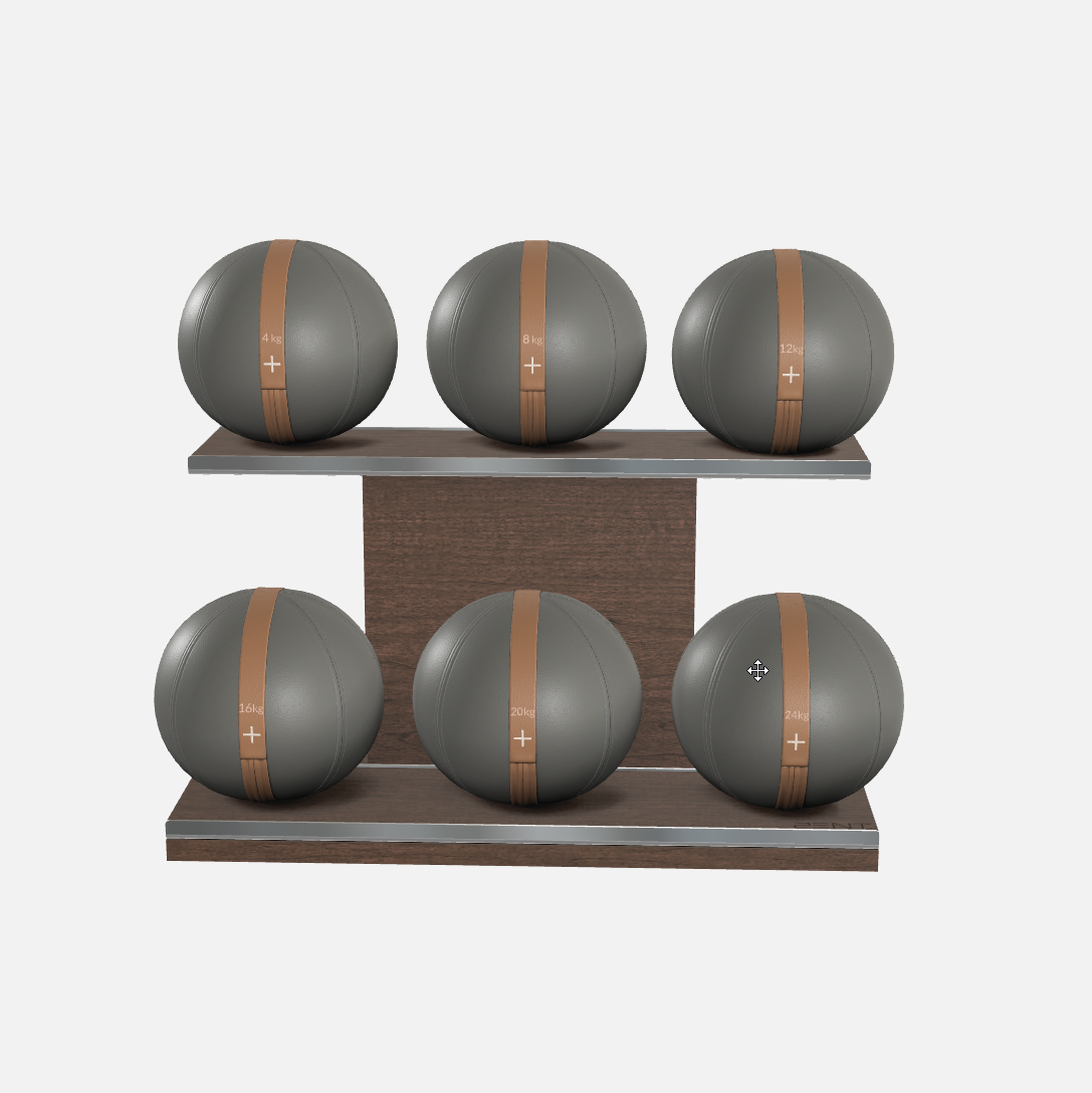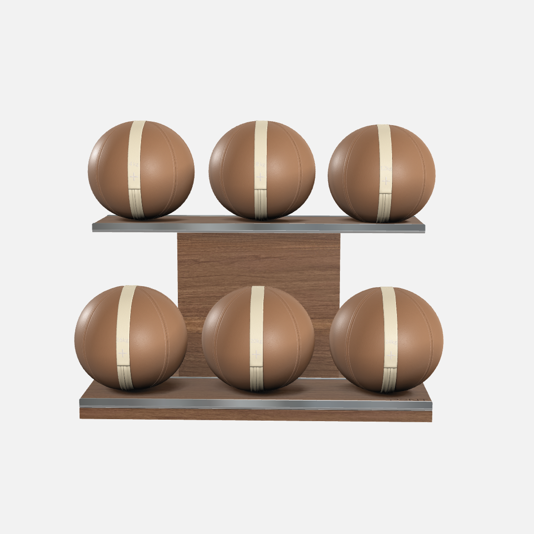 Moxa is a luxury medicine ball set hand made in Europe with real leather, with a minimal wood stand. Available in 5 leather colors, and 5 wood finishes.