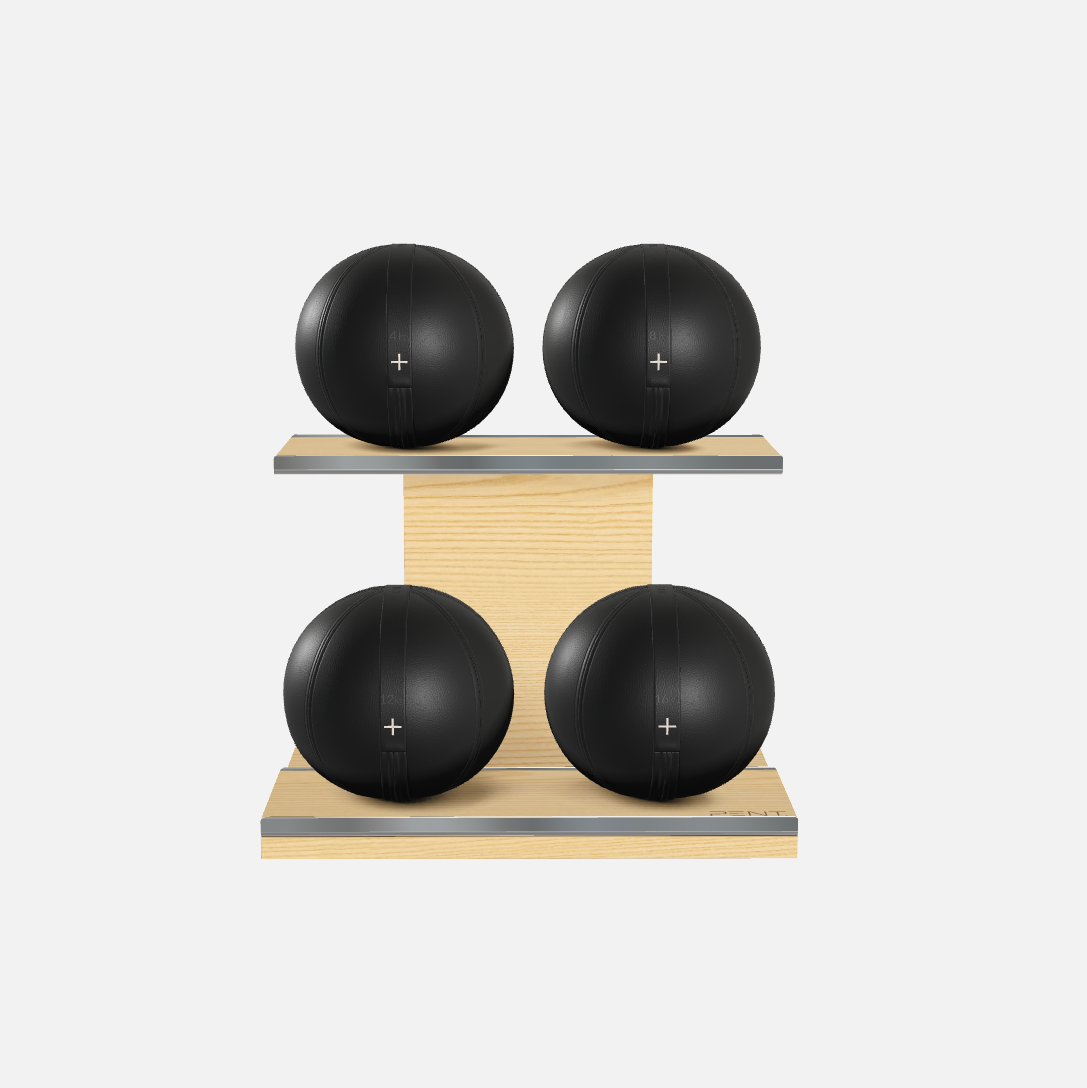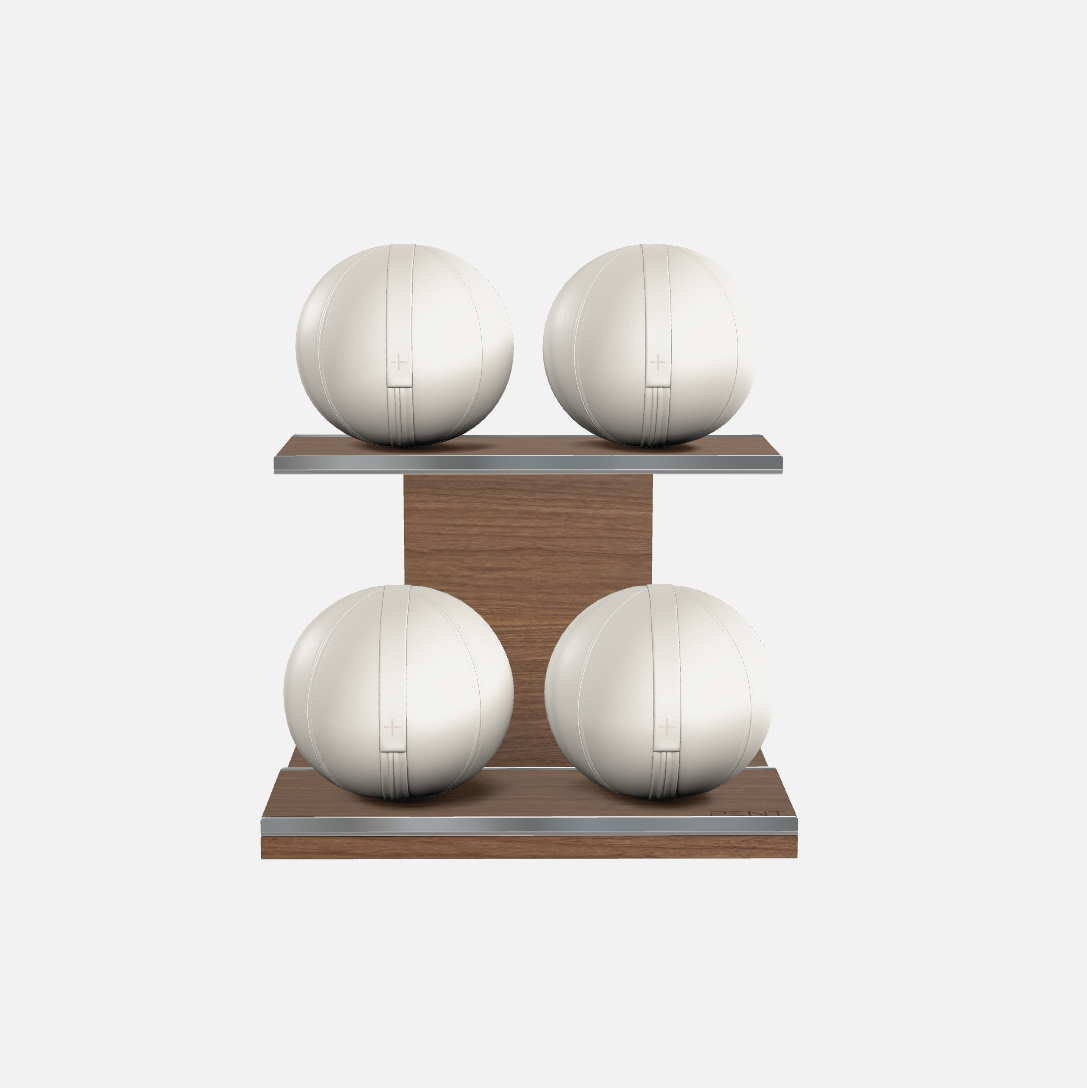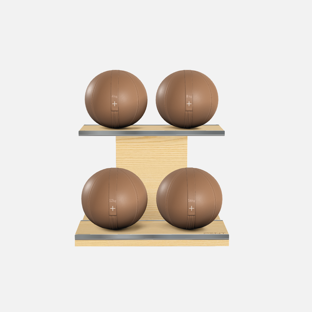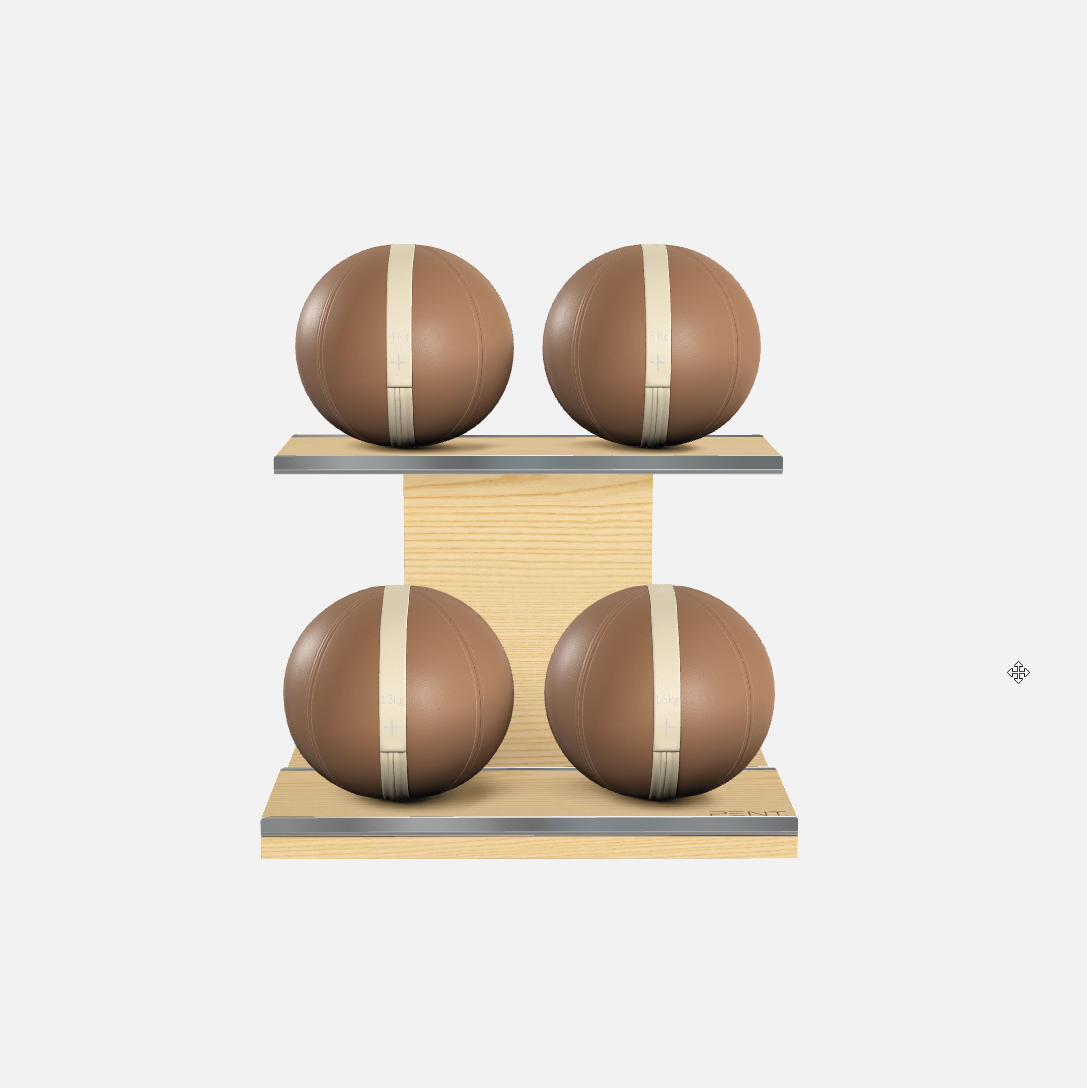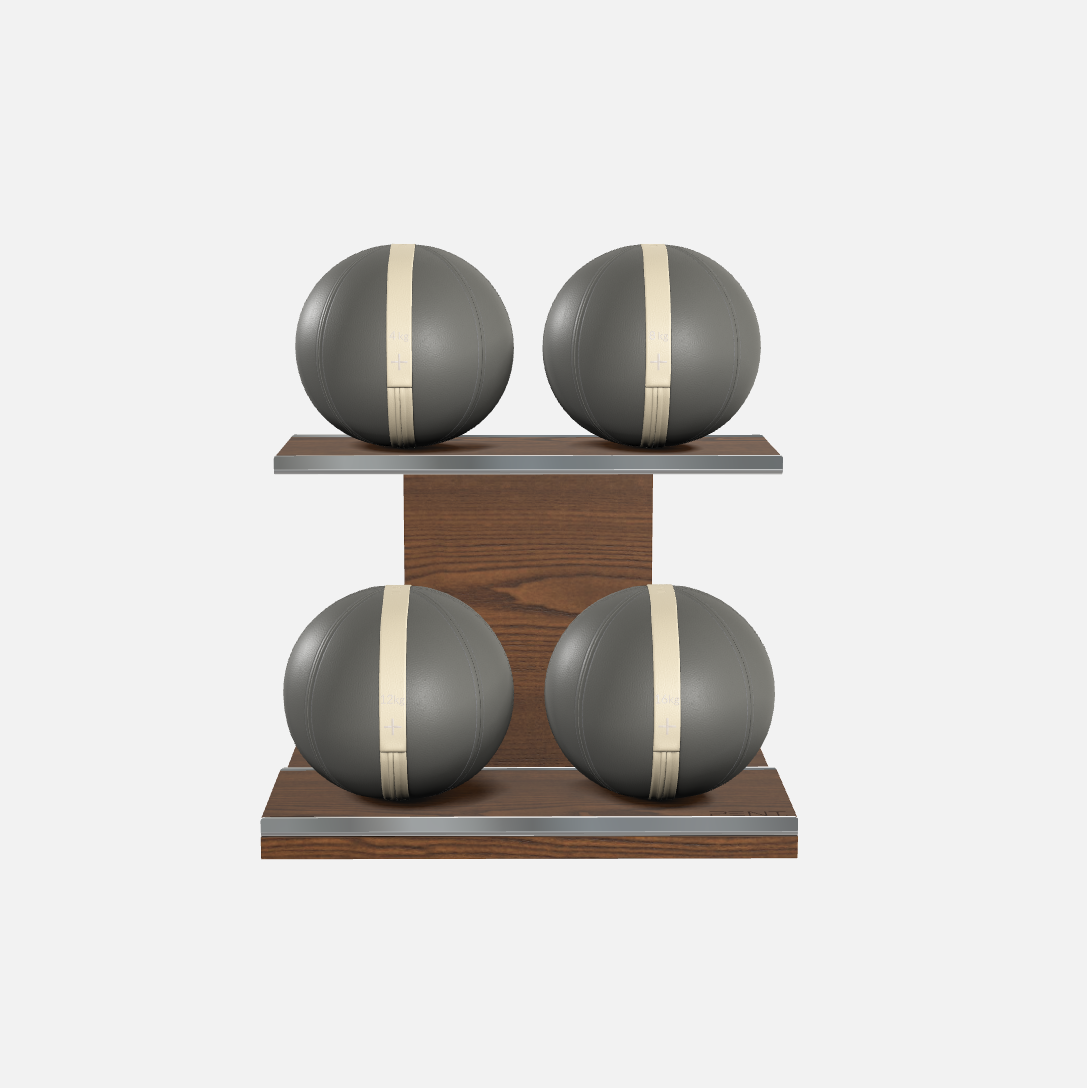 Moxa is a luxury medicine ball set hand made in Europe with real leather, with a minimal wood stand. Available in 5 leather colors, and 5 wood finishes.