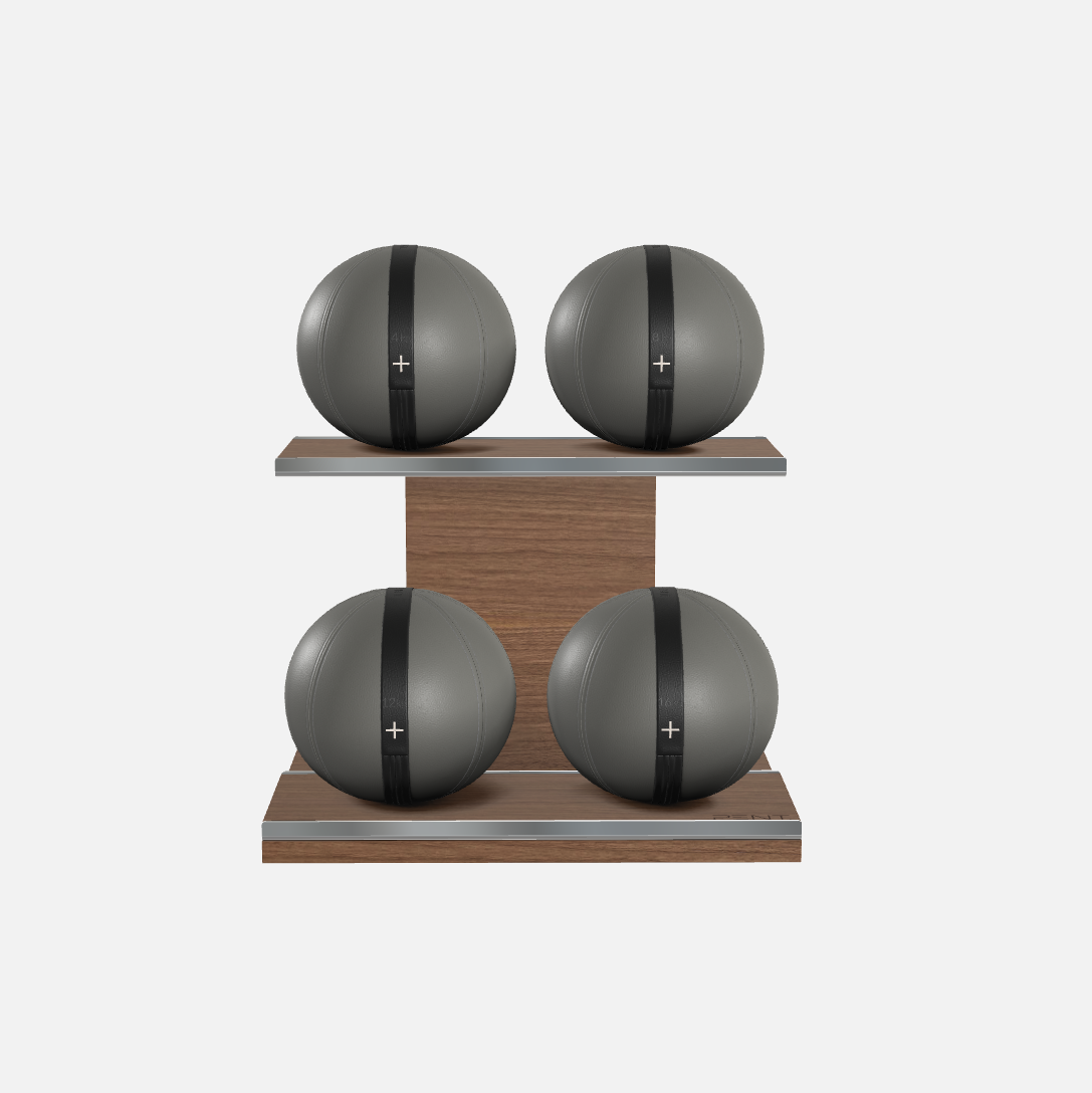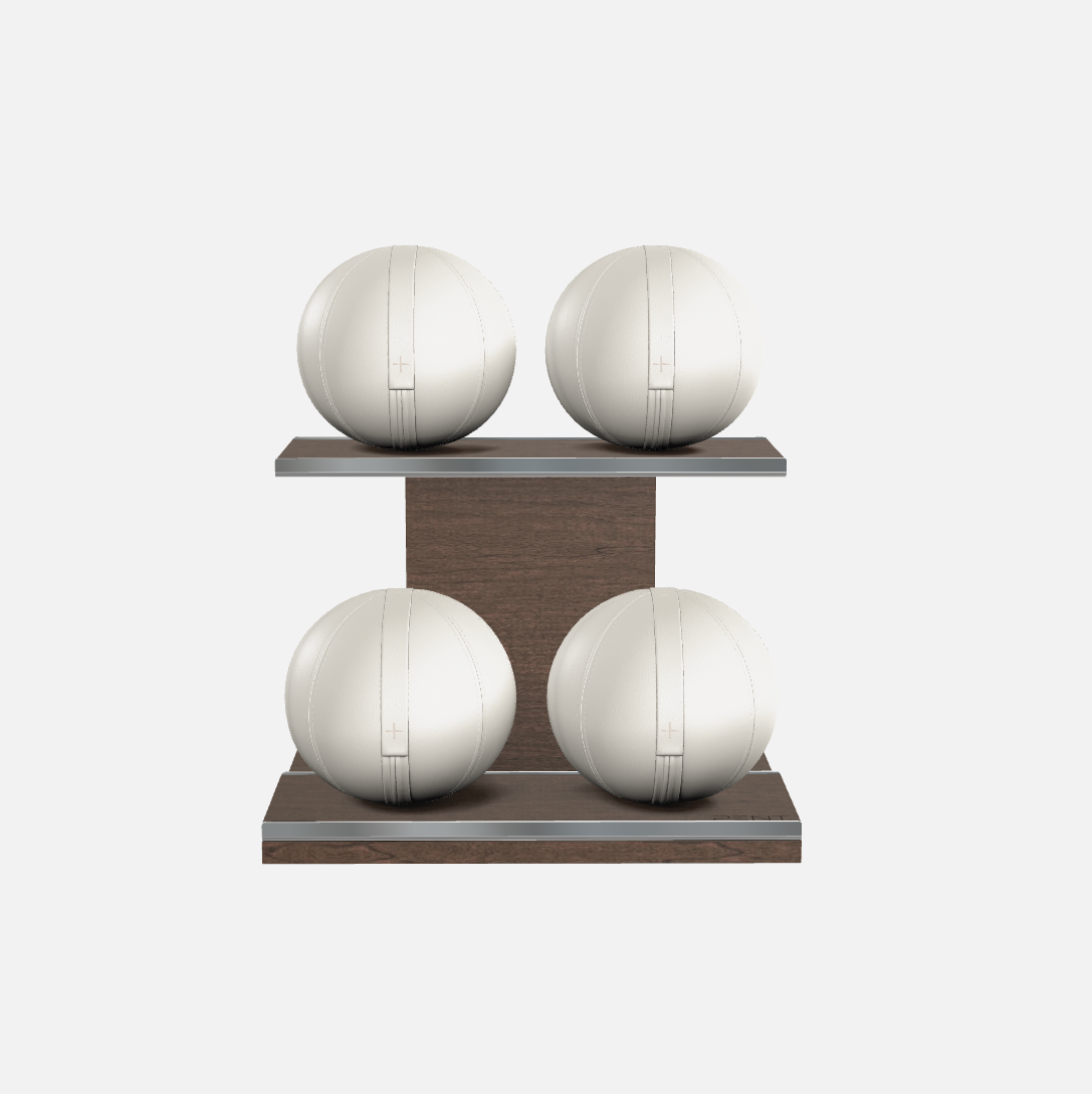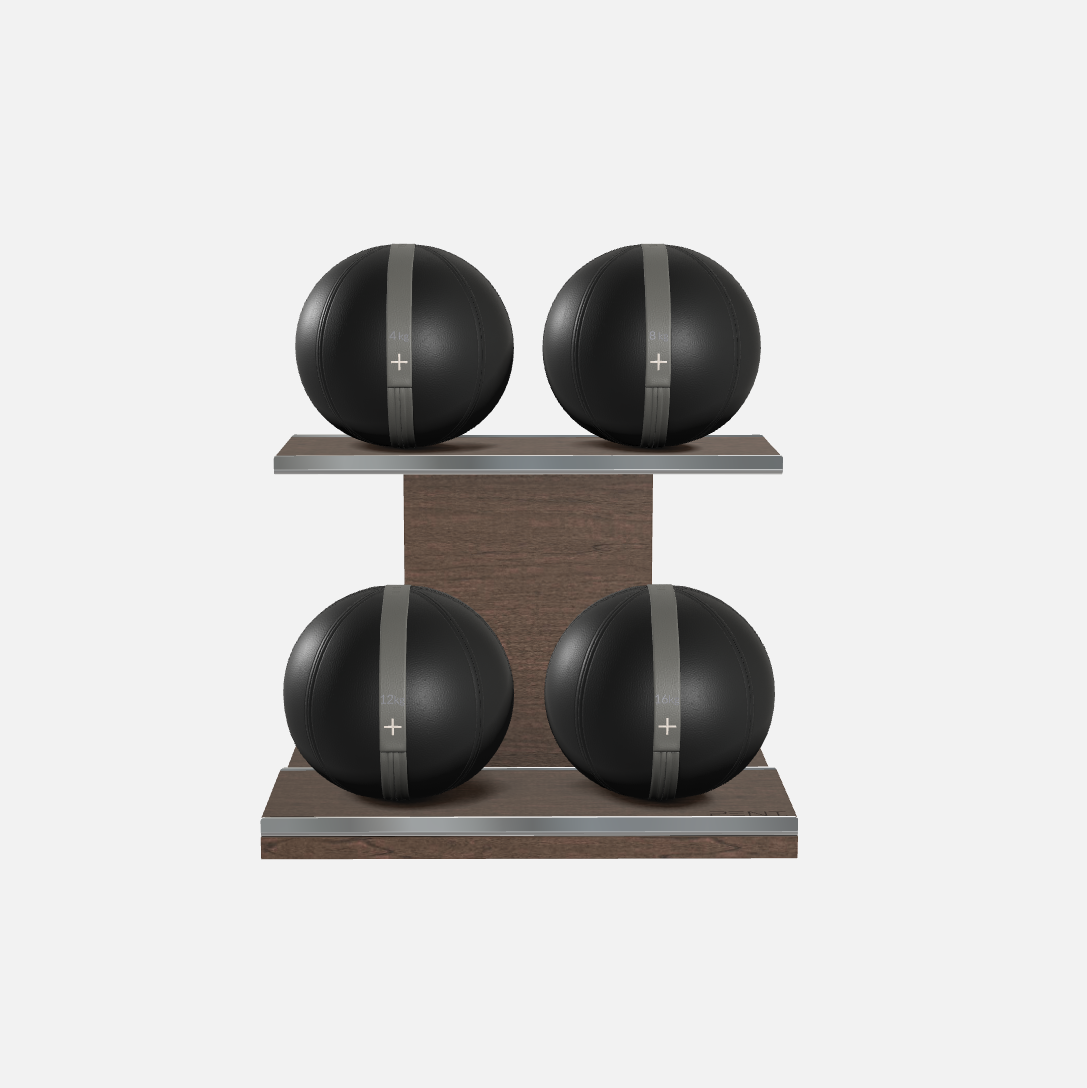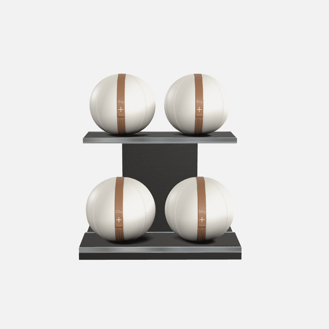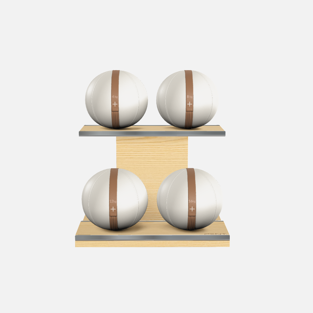 Moxa is a luxury medicine ball set hand made in Europe with real leather, with a minimal wood stand. Available in 5 leather colors, and 5 wood finishes.