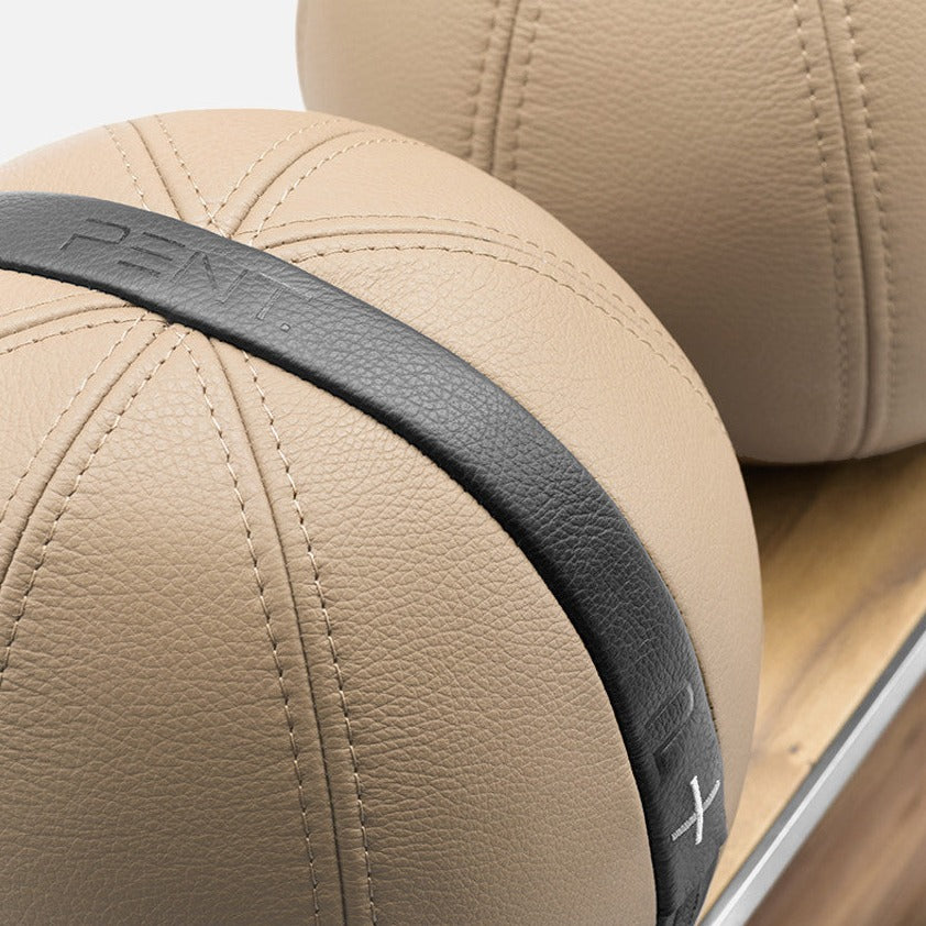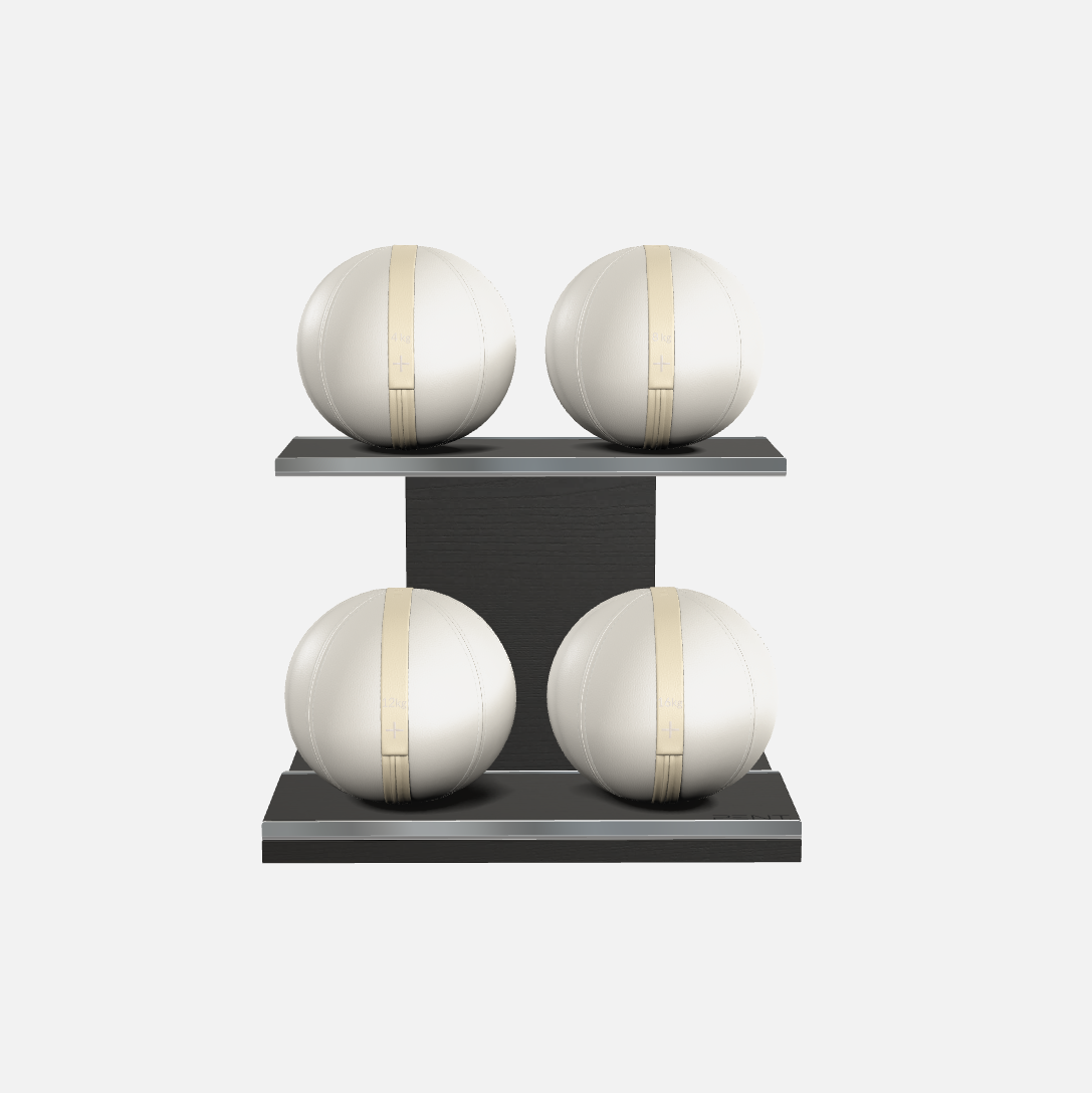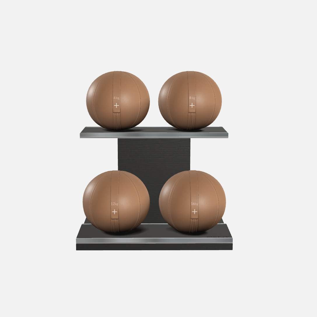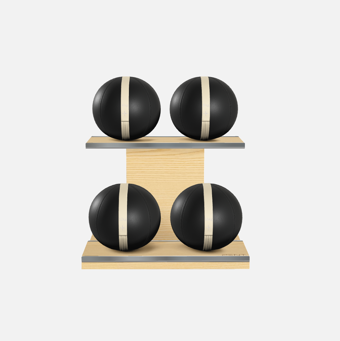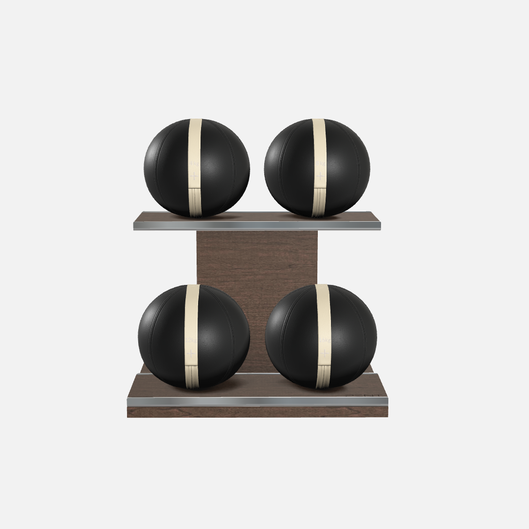 Moxa is a luxury medicine ball set hand made in Europe with real leather, with a minimal wood stand. Available in 5 leather colors, and 5 wood finishes.