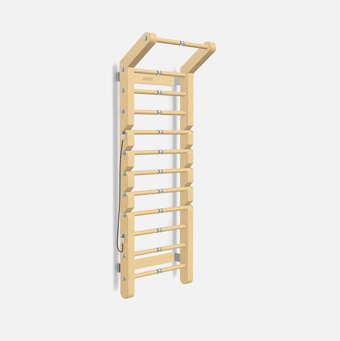 The Scala Advance Wall Bar System is a modern luxury exercise unit that will accentuate your home gym. The unit has a wall and floor mounted frame, with 6 removable rods in the middle of the ladder. Each rod has a 1-5 kg weight to it, allowing you to use each one for TRX exercises.