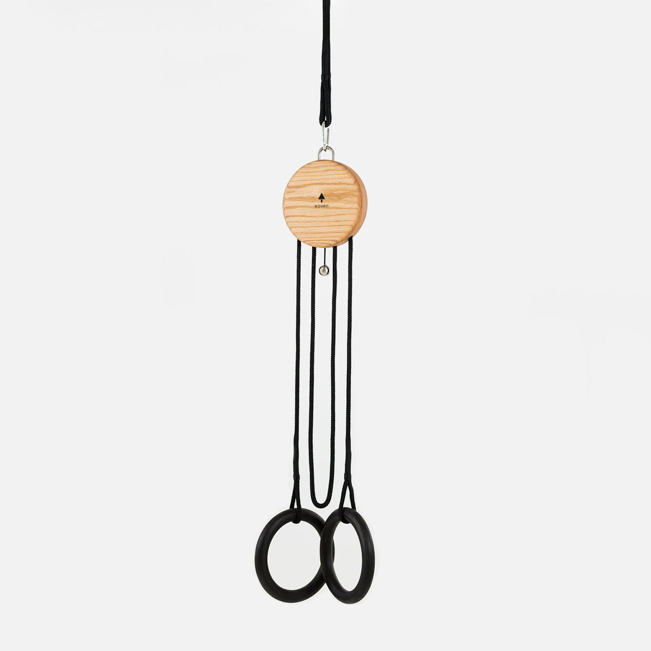 The NOHRD Sling design centers around 2 sturdy wooden gymnastic rings with that serve as handles or foot holders, depending on your specific exercise. All natural materials used for a solid and comfortable grip. The rings have a 24 cm diameter and weight capacity of 150 kg.