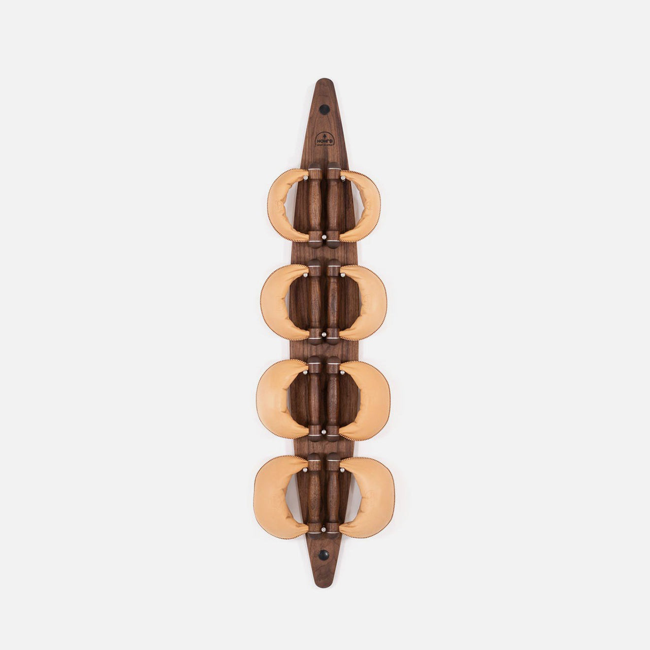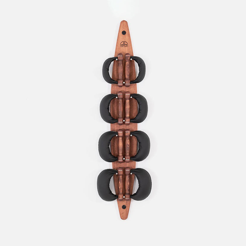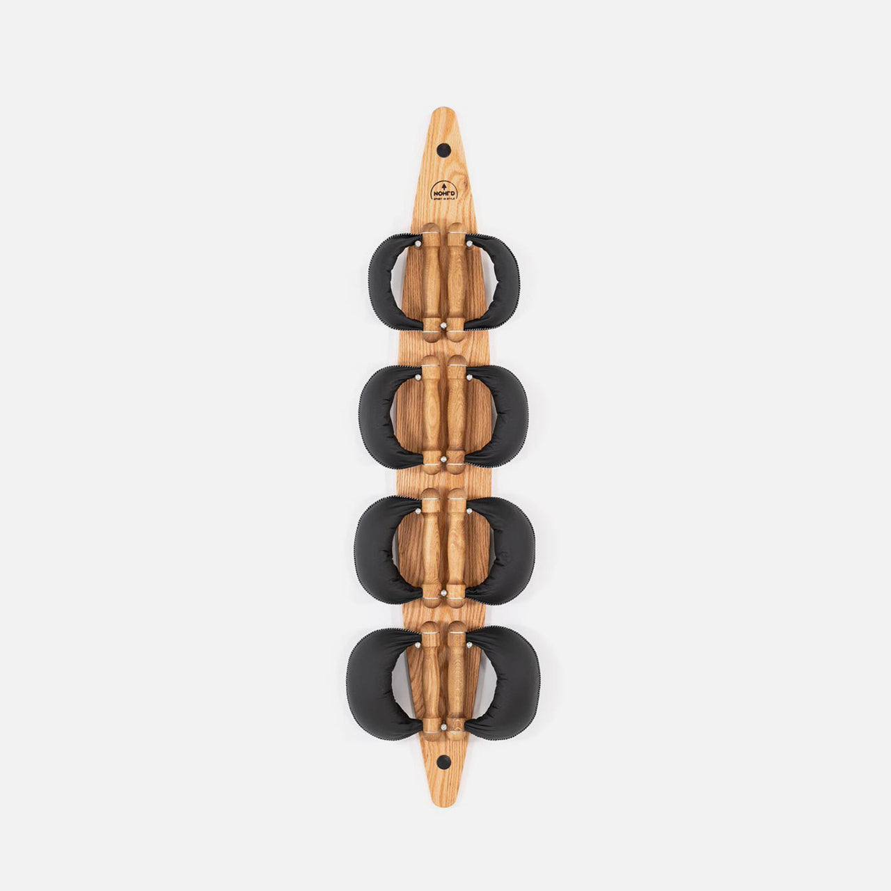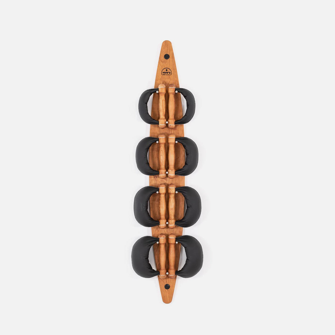 Store up to eight Swing dumbbells (in pairs: 2, 4, 6, 8 kg) effortlessly on the NOHRD SwingBoard. Made with care of highest quality wood and hand-stitched genuine leather.