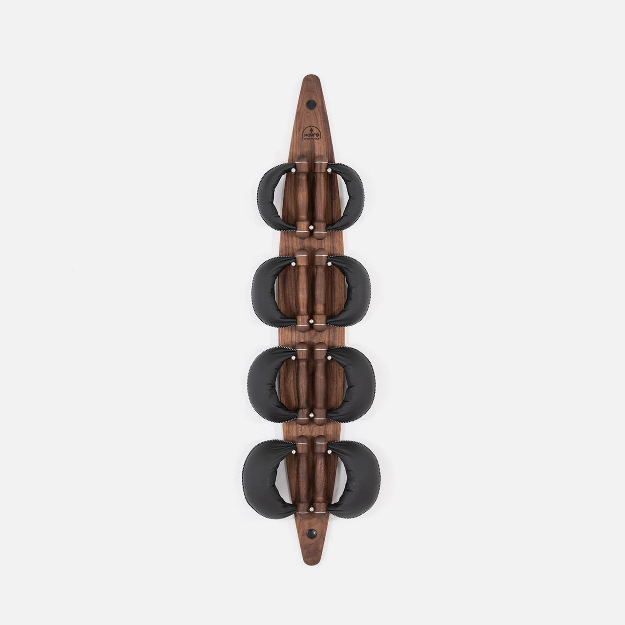 The NOHRD SwingBoard is a premium wall-mounted storage solution for your Swing bells, crafted from solid walnut wood for a sophisticated home gym setup. Enjoy a perfect blend of style and functionality, ensuring your workout space is both visually appealing and highly practical.