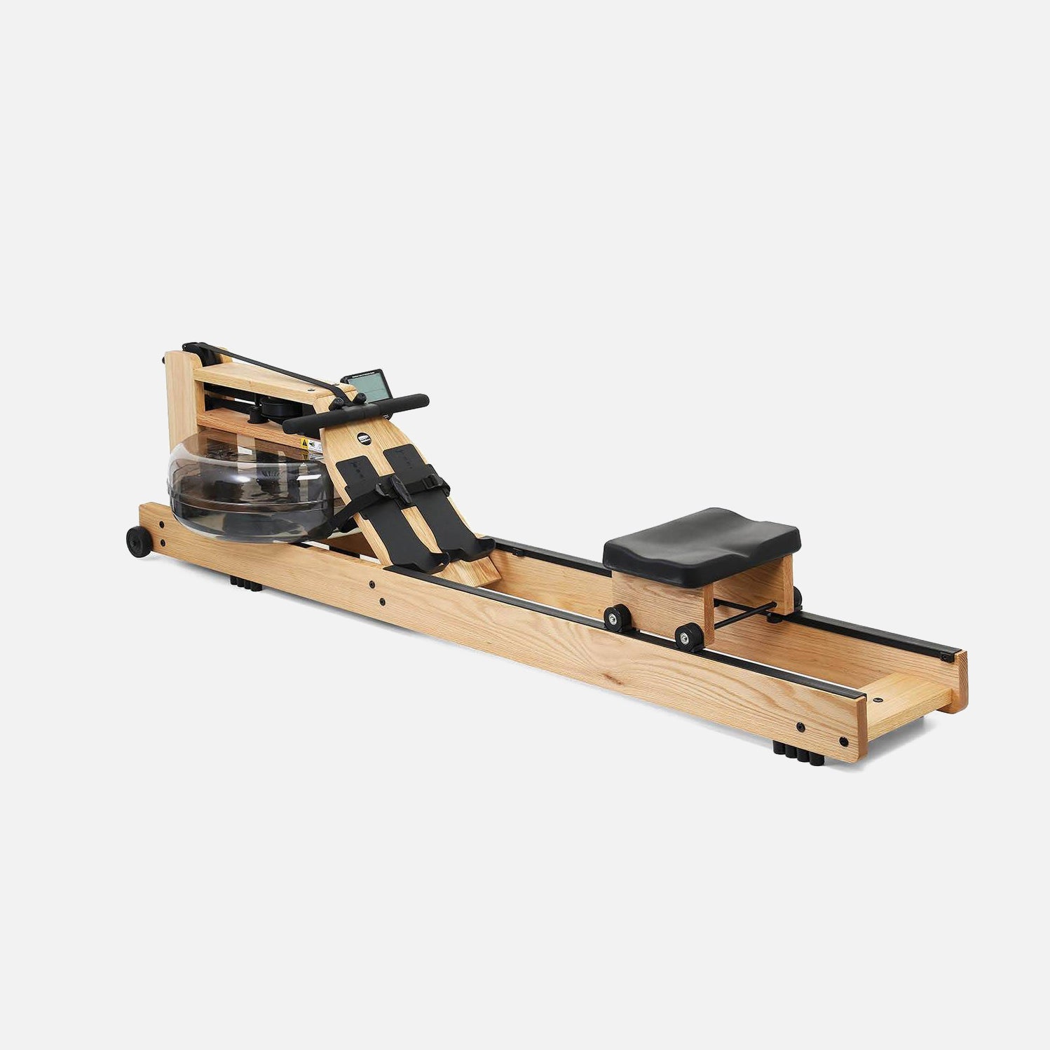 The Water Rower rowing machine is handcrafted in solid wood finished in Danish oil. It features the S4 Performance Monitor.